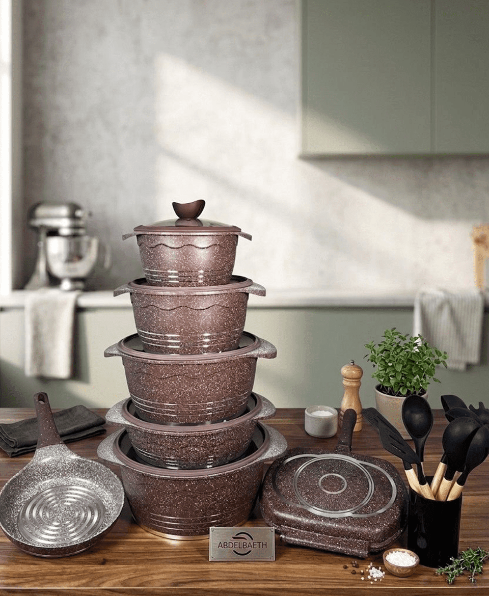 Make everyday cooking simple and enjoyable with the 16pcs Non-Stick Cookware Set. Designed for convenience and performance, this set helps you cook your favourite meals without food sticking or burning, while making cleaning quick and easy.